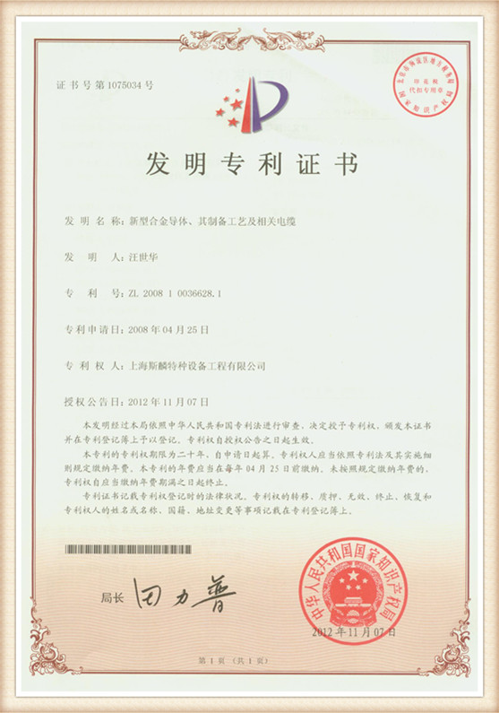 Invention Patent – New Aluminum Alloy Conductor, Production Process and Related Cable